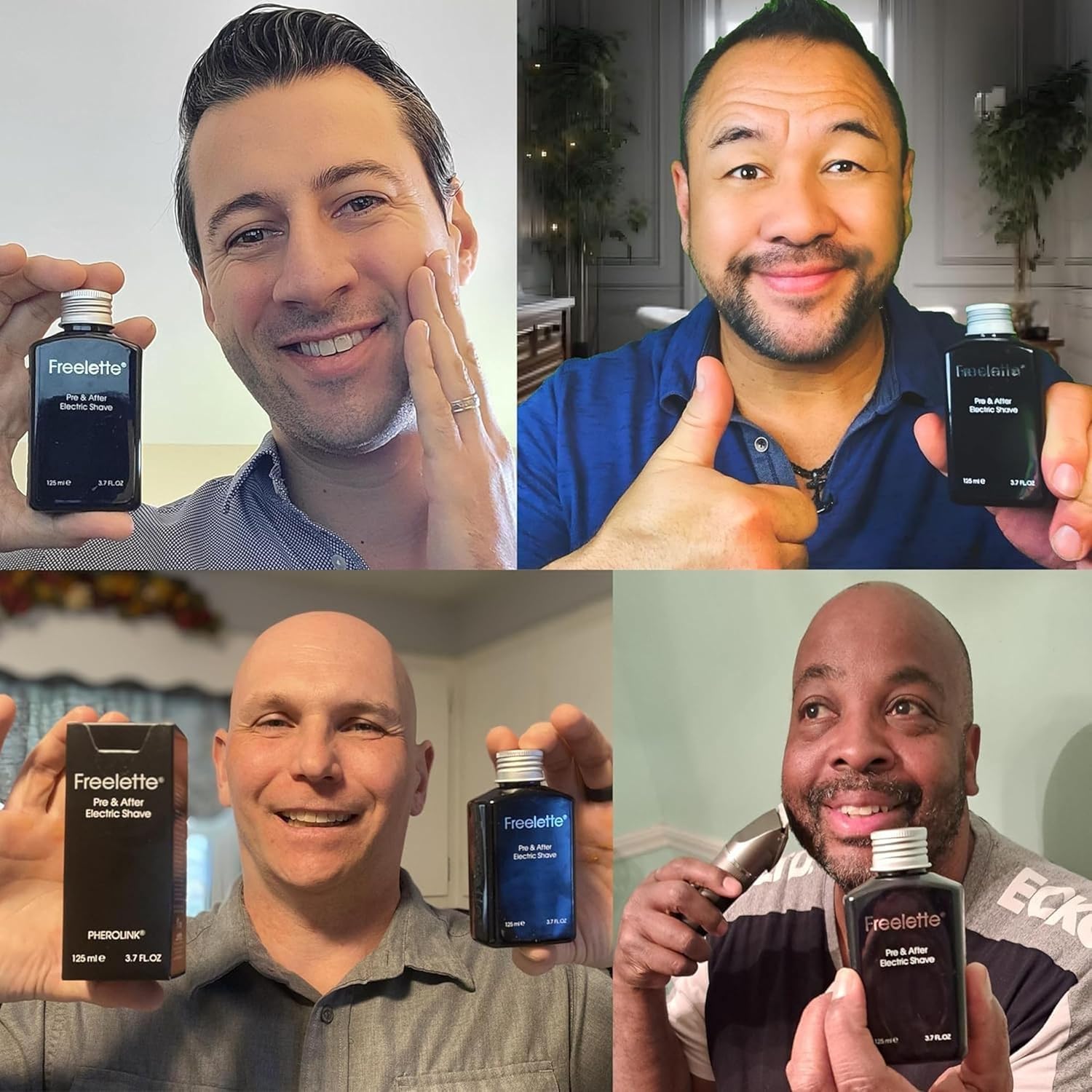 • Freelette 3-in-1 Electric Shave Pre and After Shave Lotion that replaces pre and after shaving oil, foams, soaps, creams, manual razors, and aftershaves. It enhances your shaving experience by providing a smooth, irritation-free shave. Freelette prevents clogged shaver heads, ensuring optimal performance and longevity of your electric shaver.