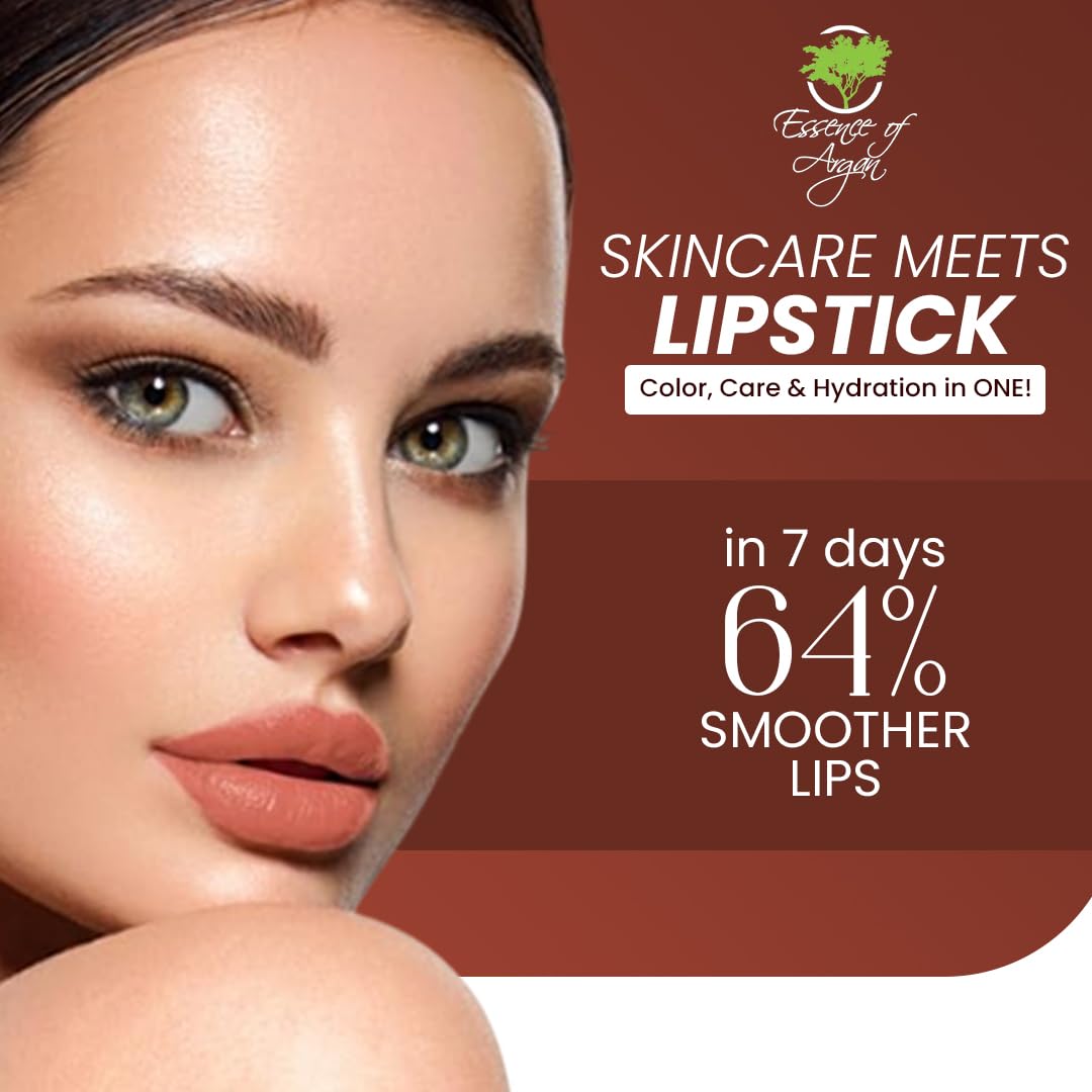Essence Of Argan Tea Berry Lipstick for Cracked & Dry Lips - 100% Organic Argan & Jojoba Oil, Shea Butter & Aloe Vera - Hydrating Long Lasting Lipstick for Women