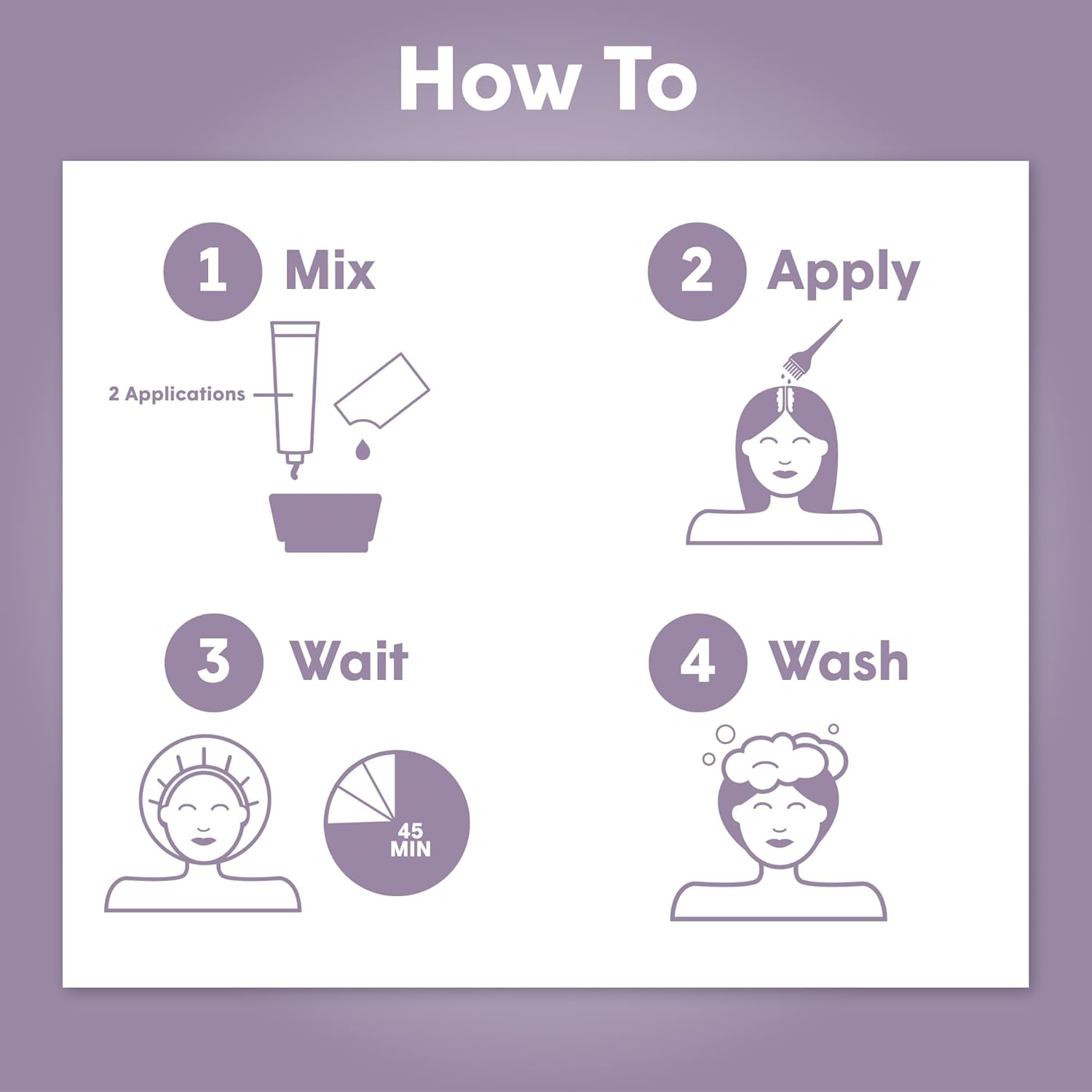 • ​​WHAT’S INCLUDED - Everything you need for two applications: permanent hair color, developer color activator, mixing bowl (2), gloves (2), processing cap (2), hair color applicator brush, and Color Fresh Shampoo & Conditioner samples.