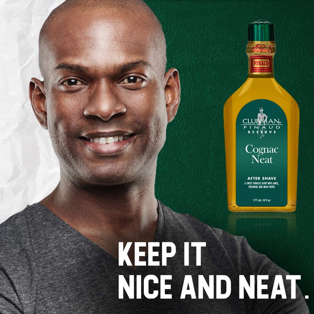 • MUST-HAVE AFTERSHAVE LOTION FOR MEN: Surround yourself with a richness and warmth never before blended as an aftershave. This unique formulation from Clubman Reserve will bring them right back into the fold with a soothing aftershave lotion that goes on easily as it tones and cools the skin while preventing post-shave irritation. Suitable for the most sensitive skin after a clean shave, Clubman Reserve Cognac Neat After Shave is all a man needs to look and feel his best!