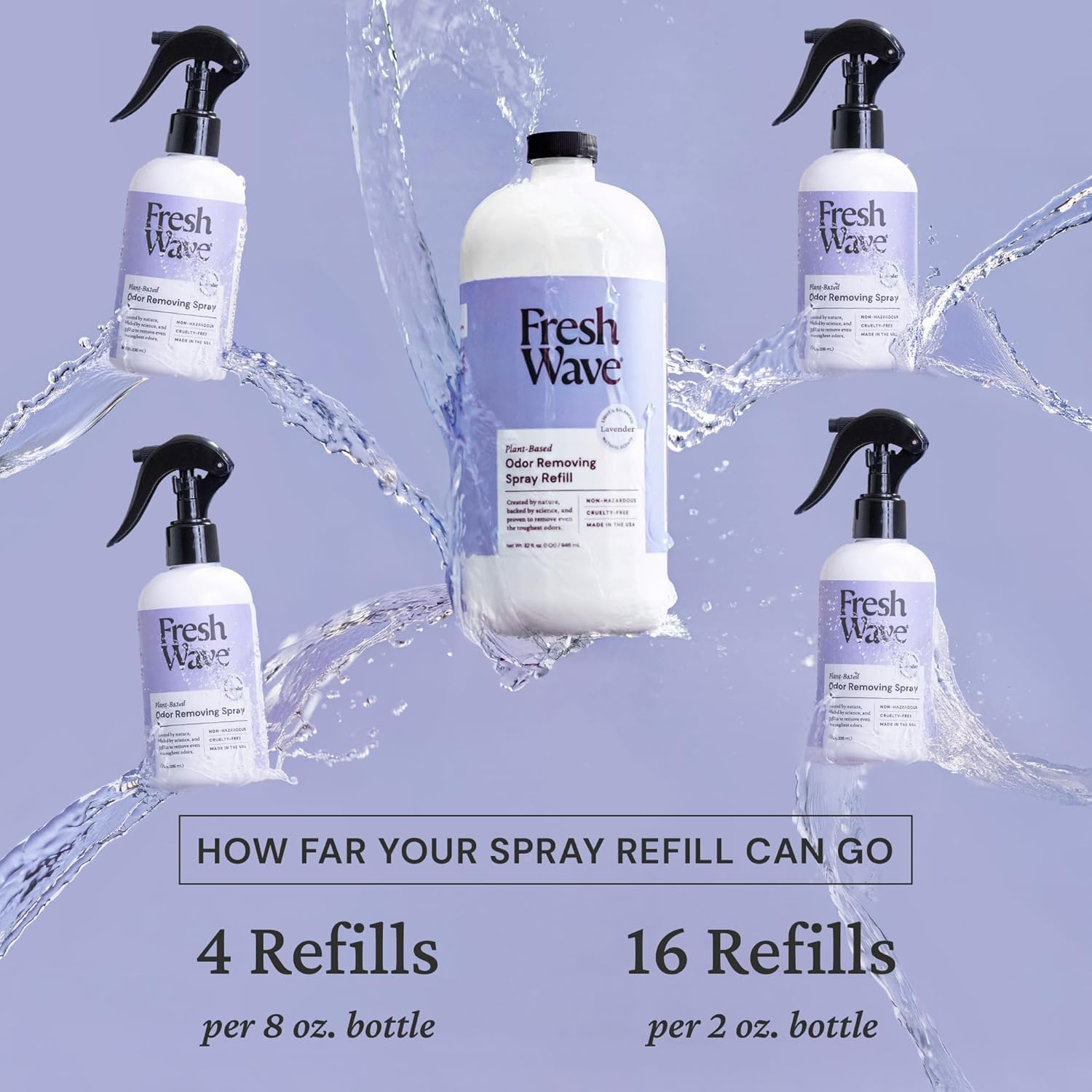 • Refresh and refill. Keep the goodness going with Fresh Wave's Spray Refill. Say goodbye to odors without any harsh chemicals.