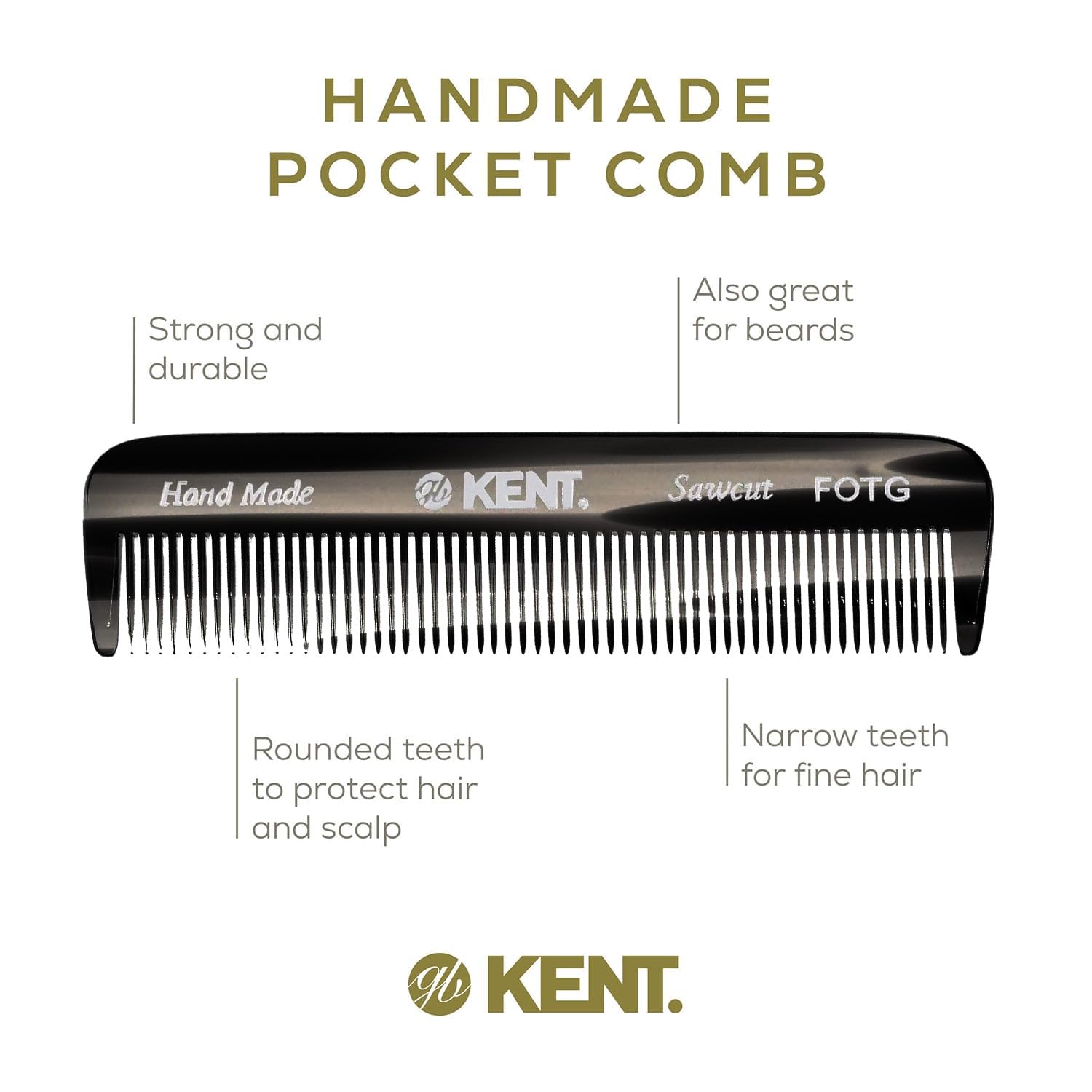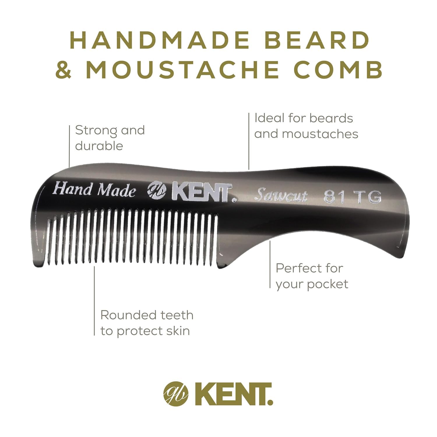 Kent 81T FOT Black Graphite Beard Pocket Comb Set for Men - Beard Kit for Travel and Home, Mustache Comb for Men, Mini Comb Beard Combs for Mens Grooming, Sawcut Hand polished Made in England