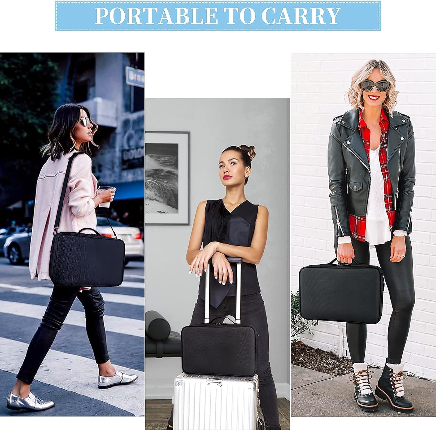 • Adjustable Shoulder Strap: Professional makeup bag with a shoulder strap can release your hands or attach to your trunk, portable carry handle for easy lifting or hanging.