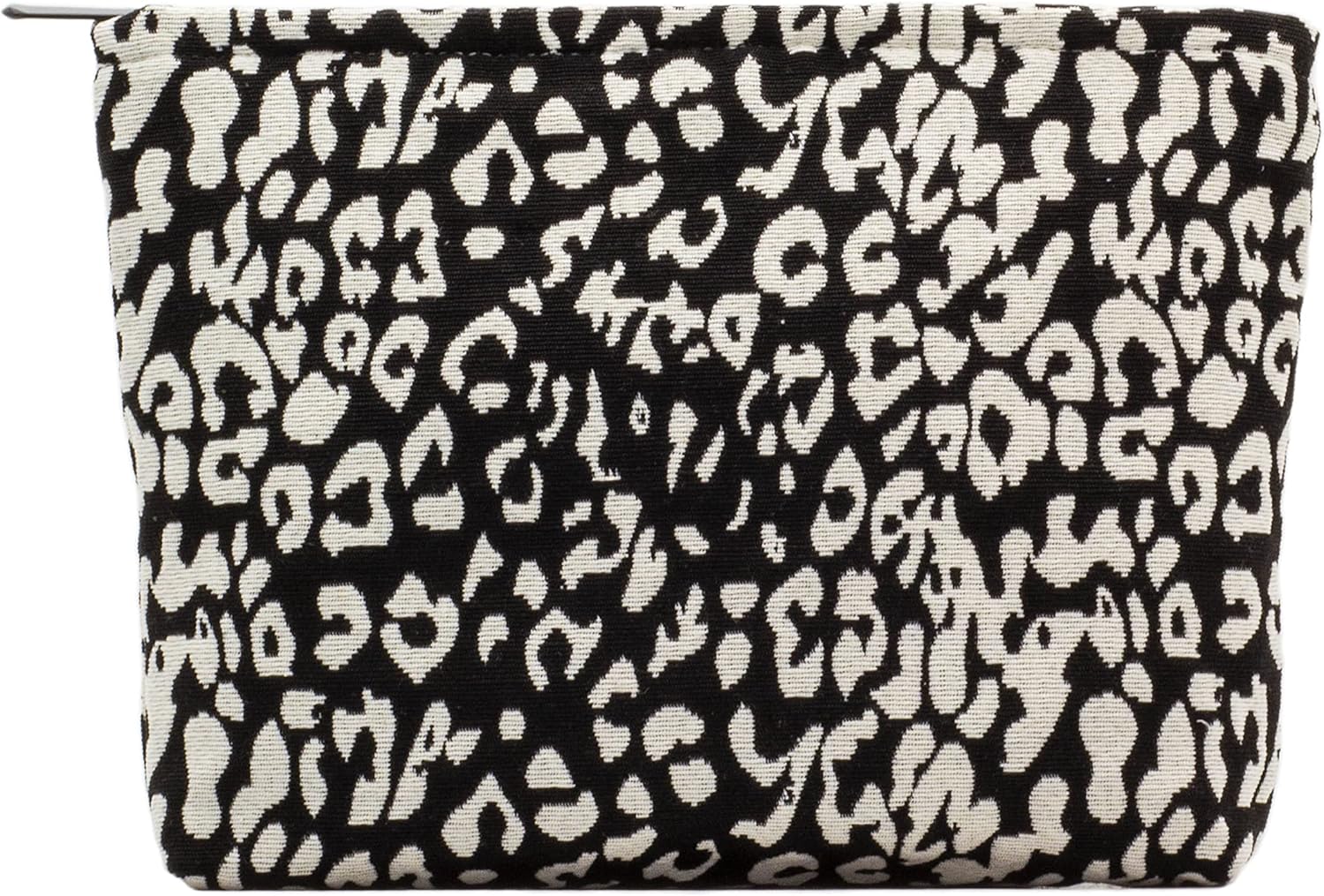 Makeup Bags for Purse Zipper Cosmetic Pouch Large Travel Canvas Make Up Organizer Tool Pouch for Women and Girls,Leopard Black