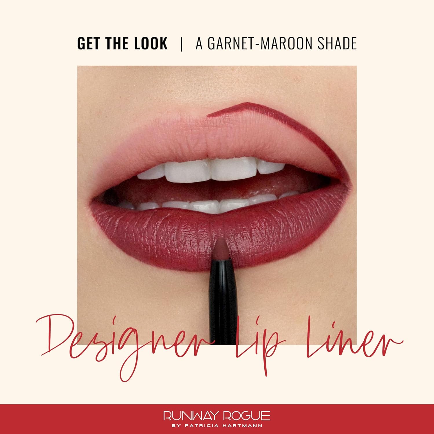 Runway Rogue Designer Liner Lip Pencil, Matte Garnet-Maroon Lip Liner Pencil and Lip Liner Sharpener, ‘Get the Look’