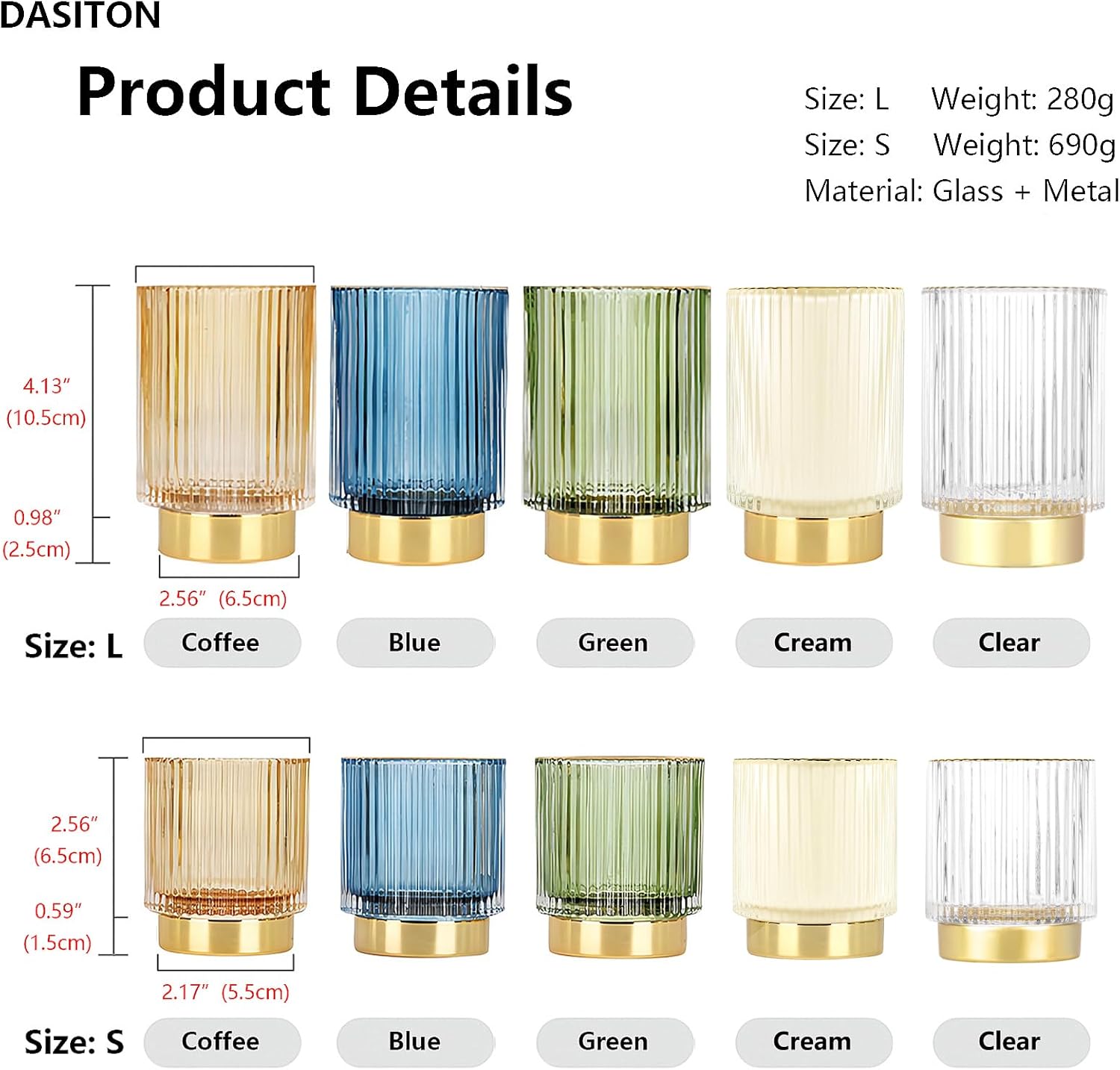 DASITON Makeup Brush holder Organizer,Crystal Cosmetic Makeup Brush Glass Brushes Storage Holder, Vintage Make Up Brush Cup Pen Pencil Holder striped vase(Coffee L)