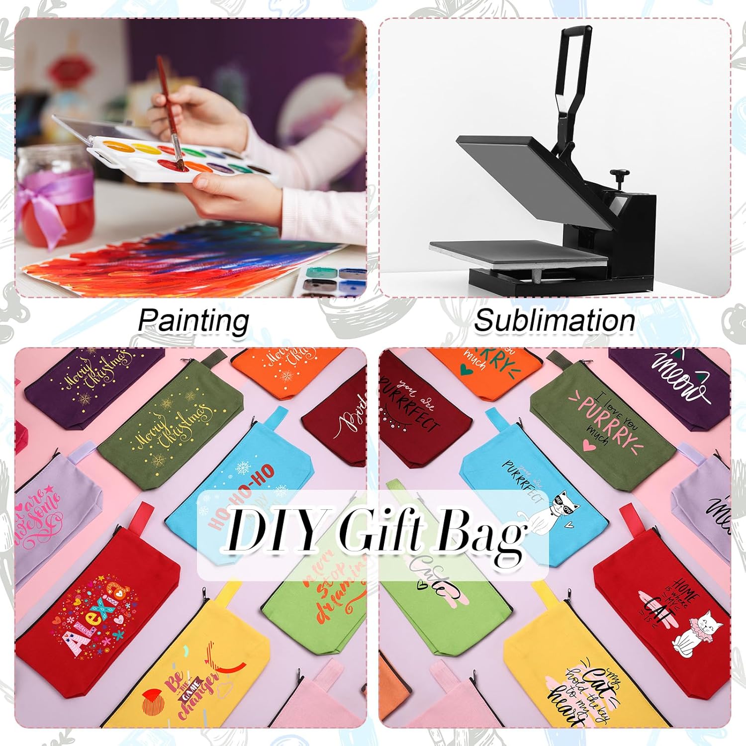 - Rich in Quantity: you will receive 60 pieces canvas cosmetic bags with blank prints that can be applied for DIY such as painting, embroidery, tie dye and so on, you can make your own patterns on them, sufficient quantity to meet your daily needs, and you can also share some with your friends; The colors are vibrant and pretty