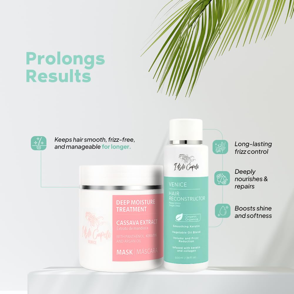 Venice Smoothing Keratin Kit, Keratin Hair Treatment Straightening Set- Keratina Para Alisar El Pelo Sin Formol - Paso Unico & Hair Mask for Silky Soft Hair (500g)- (Pack of 2)