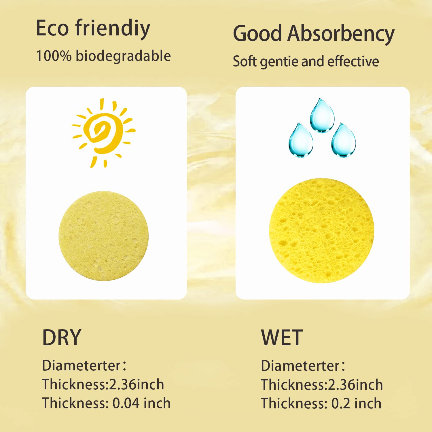 - Natural and Safety: Made of 100% natural sponge extracted from wood pulp, environmentally friendly, good absorbency and no irritation to skin.