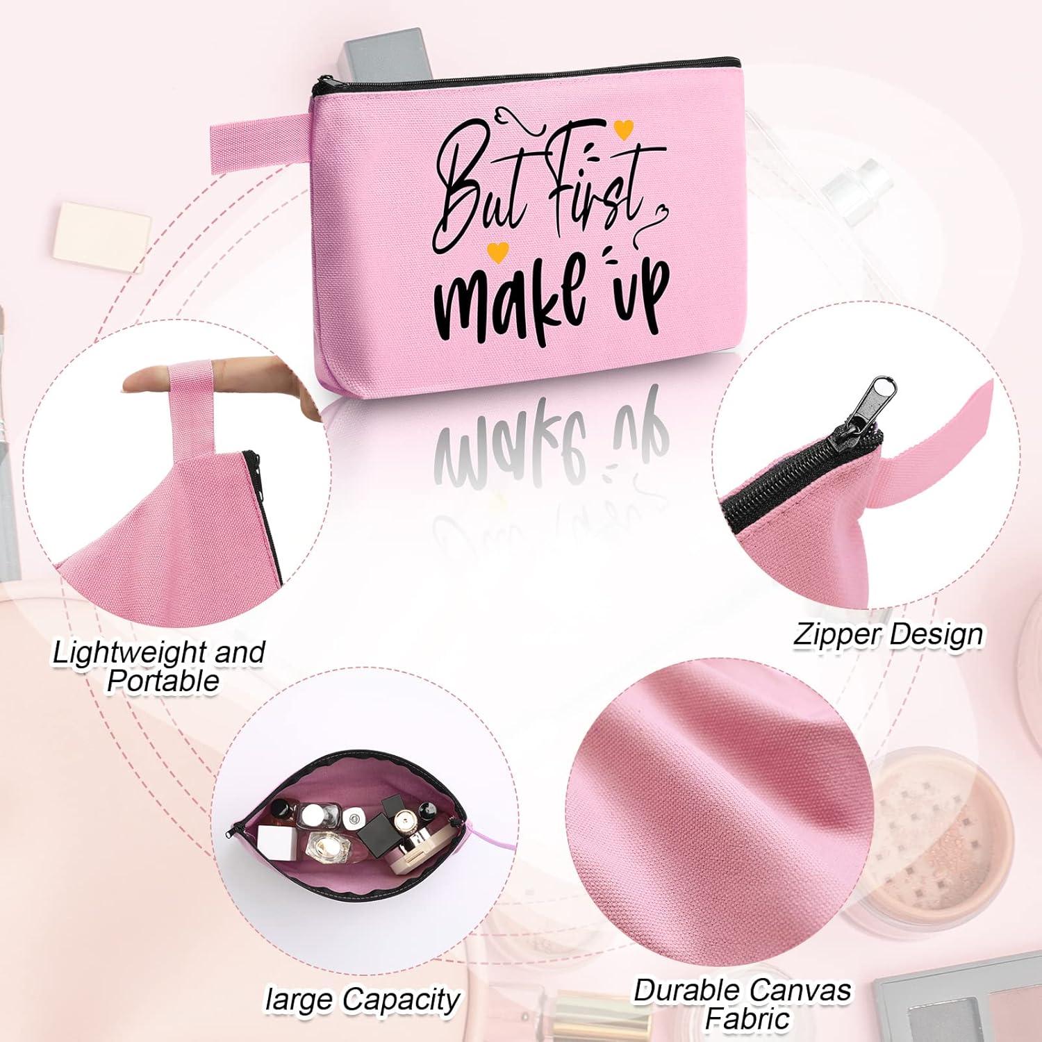 - Proper Size: each canvas cosmetic bag measures about 7.5 x 5 x 2 inches, enough capacity to hold small items such as makeup tools and coin, small and portable, suitable for daily or travel storage and organization, keeping your home organized