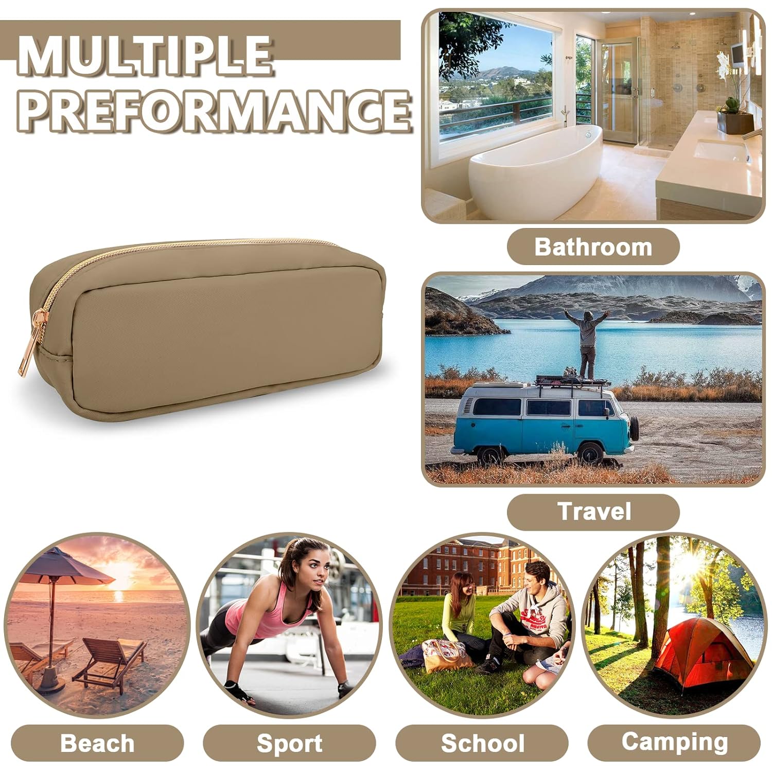 - 【Multi-purpose】The preppy makeup bag makes it easy to pack and carry cosmetics, jewelry, sanitary napkins, brushes, pencils, small electronic accessories, toiletries, medications, tools or other travel essentials. It's a great bag for school, travel, parties, camping, beach, gym, etc.