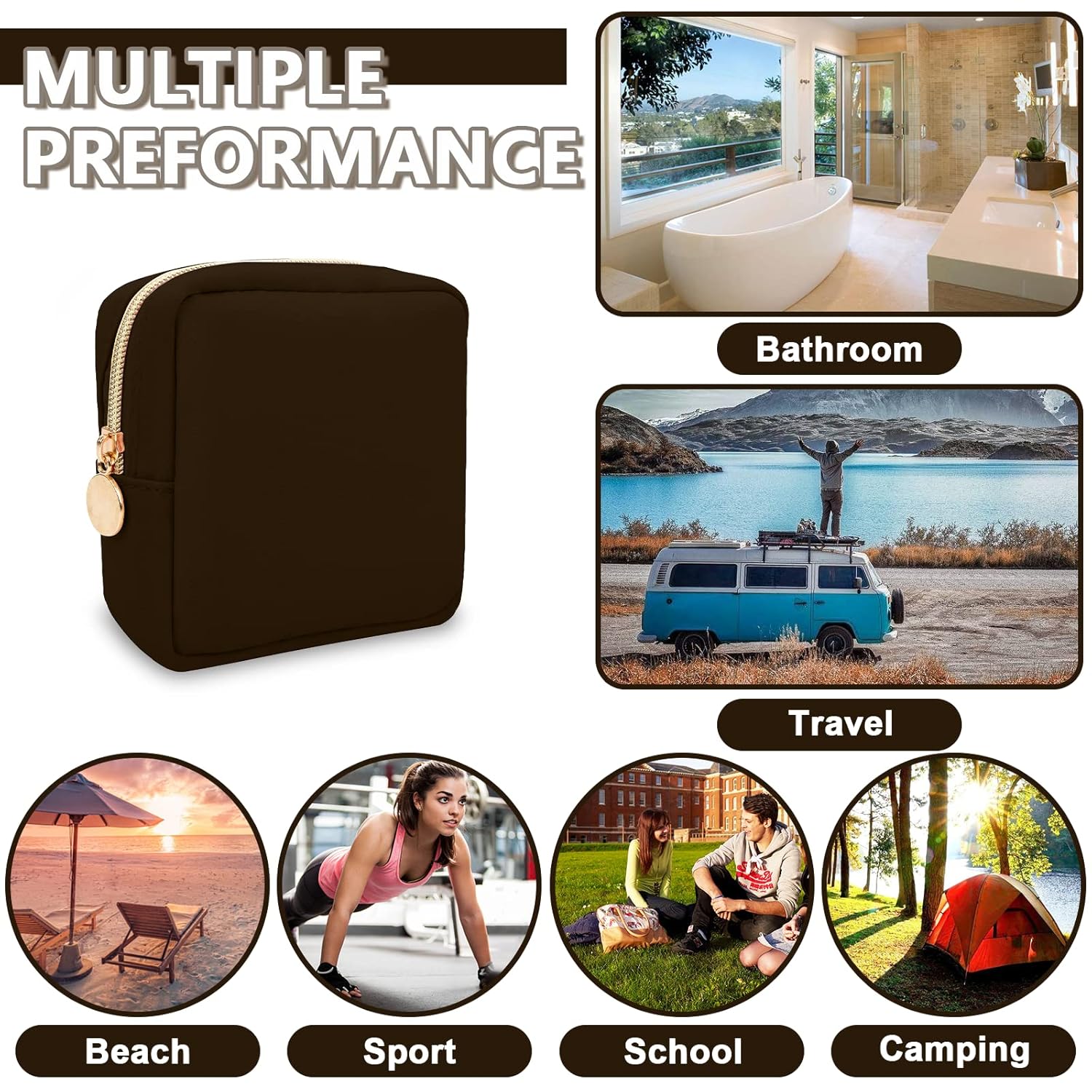 - 【Multi-purpose】The preppy makeup bag makes it easy to pack and carry cosmetics, jewelry, sanitary napkins, brushes, pencils, small electronic accessories, toiletries, medications, tools or other travel essentials. It's a great bag for school, travel, parties, camping, beach, gym, etc.