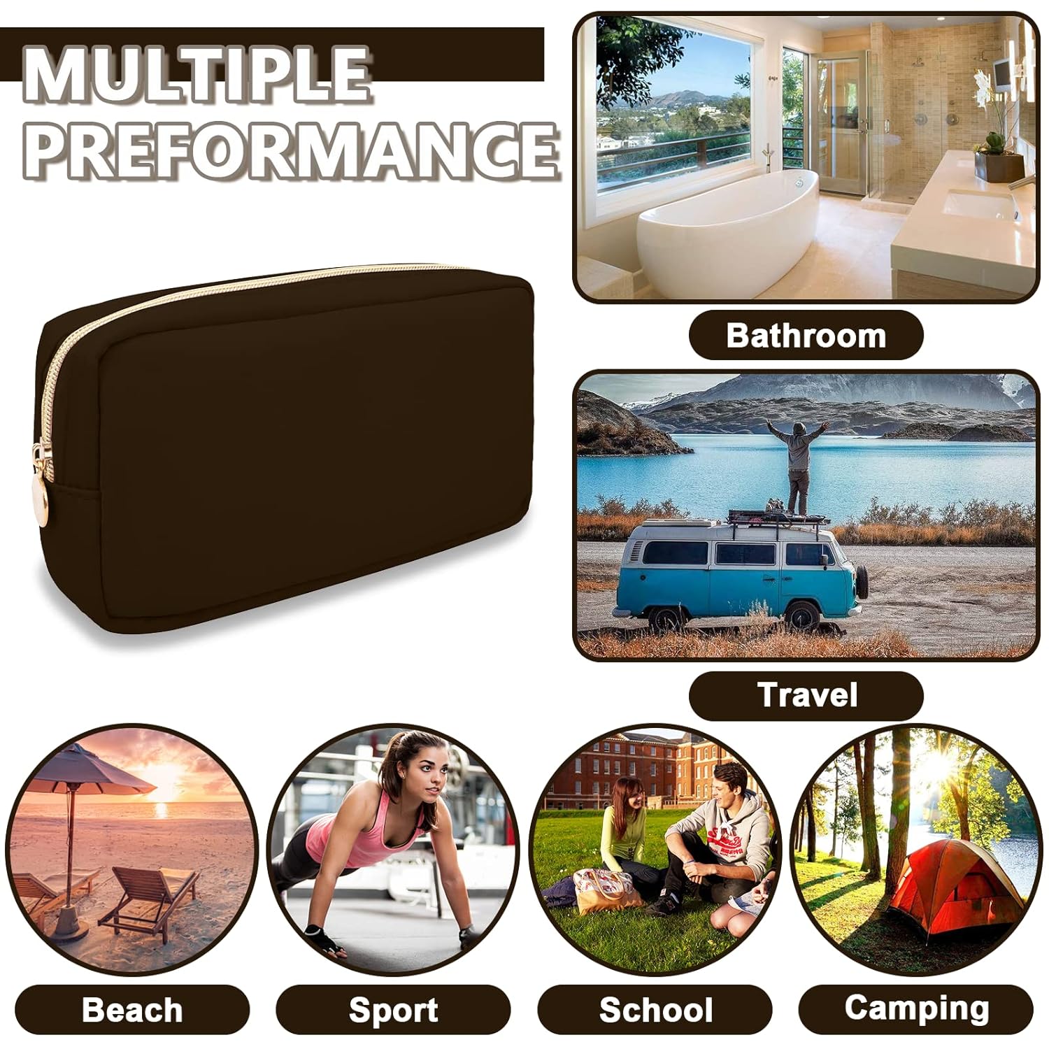 - 【Multi-purpose】The preppy makeup bag makes it easy to pack and carry cosmetics, jewelry, sanitary napkins, brushes, pencils, small electronic accessories, toiletries, medications, tools or other travel essentials. It's a great bag for school, travel, parties, camping, beach, gym, etc.