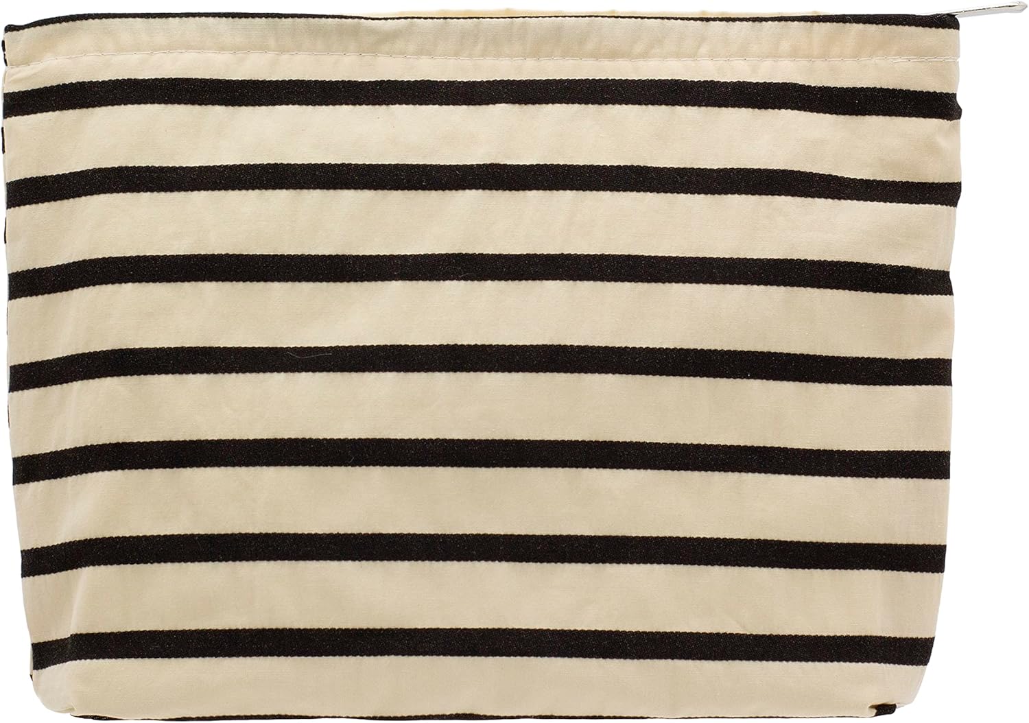 PAZIMIIK Floral Makeup Bag Large Cotton Zipper Pouch for Purse Travel Canvas Make Up Organizer for Women Cosmetic,Stripe White