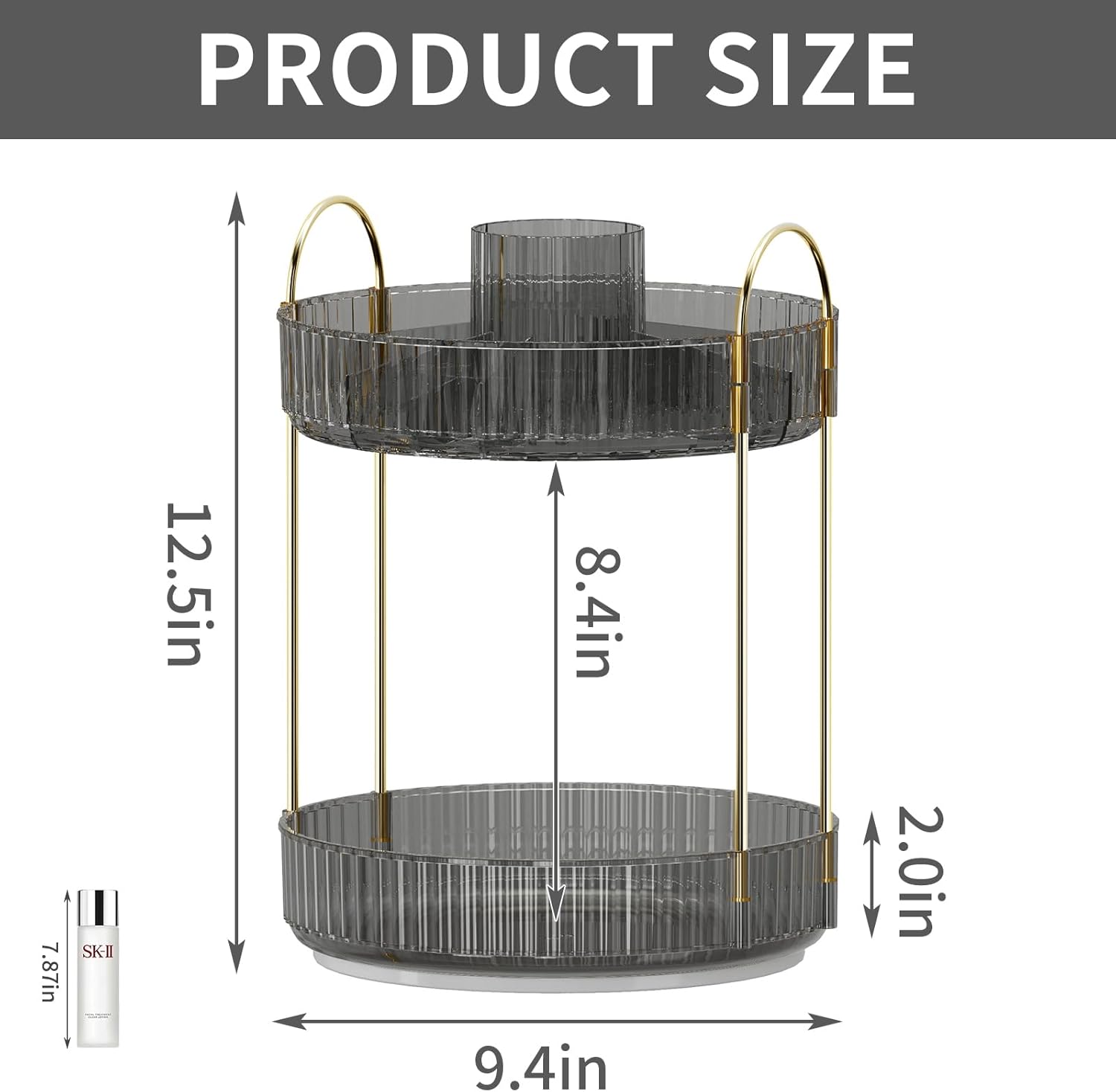360° Rotating Makeup Organizer, Large-Capacity Skincare Make Up Storage 2 Tier Perfume Organizers Cosmetic Dresser Organizer with Makeup Brush Holder, Fits Bedroom, Bathroom, Vanity Shelf Countertop