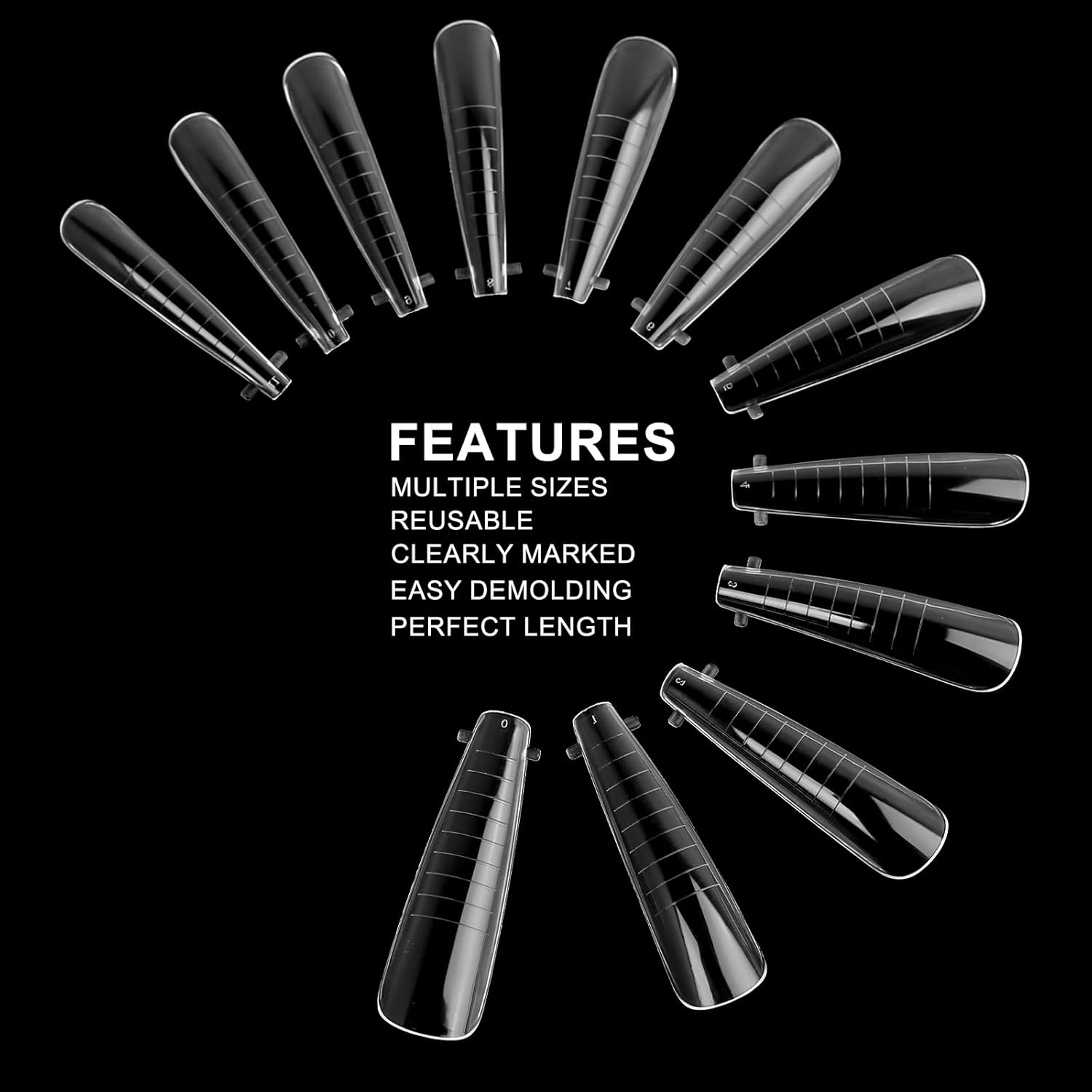 - Transparent Packaging: Dual nail extension molds come in a transparent box that makes it easy to carry and find the size you want quickly and efficiently. With 120 pieces included, you'll have plenty of nail forms for Poly Nail Gel to work with for all your nail art needs.