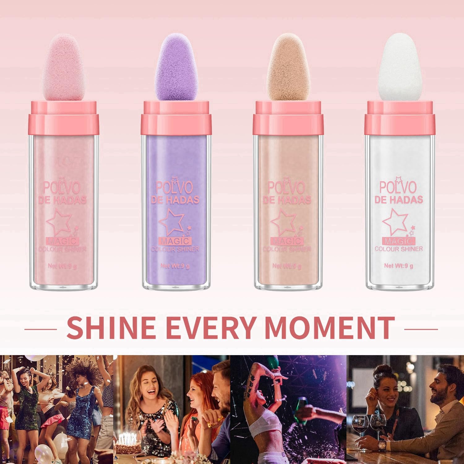 URQT 4 Color Polvo De Hadas Fairy Dust Highlight Patting Powder - Full Body Contouring and Clavicle Pearlescent Patting Powder for Face and Eye, Halloween Sparkling Body Glitter Powder (4 Pack)