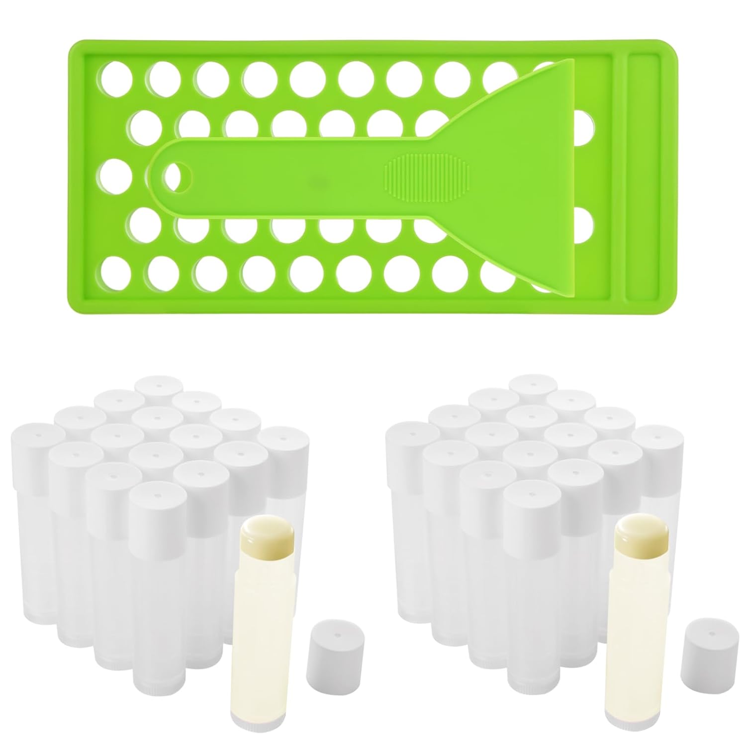 • Specifications - The lip balm making kit has 1 tray, 1 spatula, and 100 clear lipstick tubes. Each lip balm tube measures 2.63 inches in height and 0.65 inches in diameter, which can hold 3/16 ounces (5.5 ml) of lip balm.
