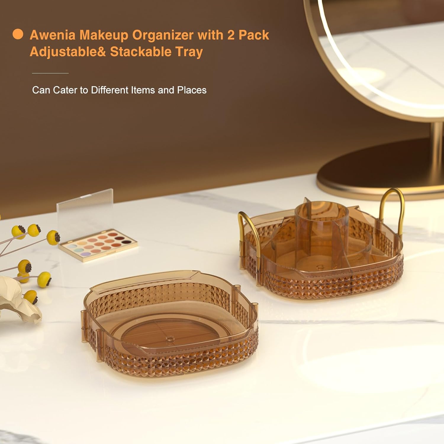 • Stackable &Adjustable:➤The lazy susan organizer is stackable if you get more Awenia clear bathroom countertop organizer and help you save 80% space.With separated top and raise,thicken edges, you can put long brushes,makeup bottle, don’t worry about falling. You can combine three adjustment plates of make up organizers according to your needs.