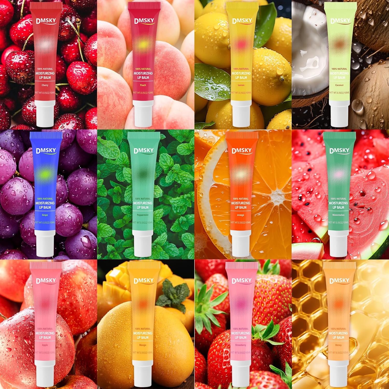 - 【12 Flavors Lip Gloss Set】Strawberry, watermelon, mango, apple, grape, peach, orange, cherry, mint, lemon, honey, coconut. Pleasant flavor on your lips that will make you want to swipe our lip gloss again and again