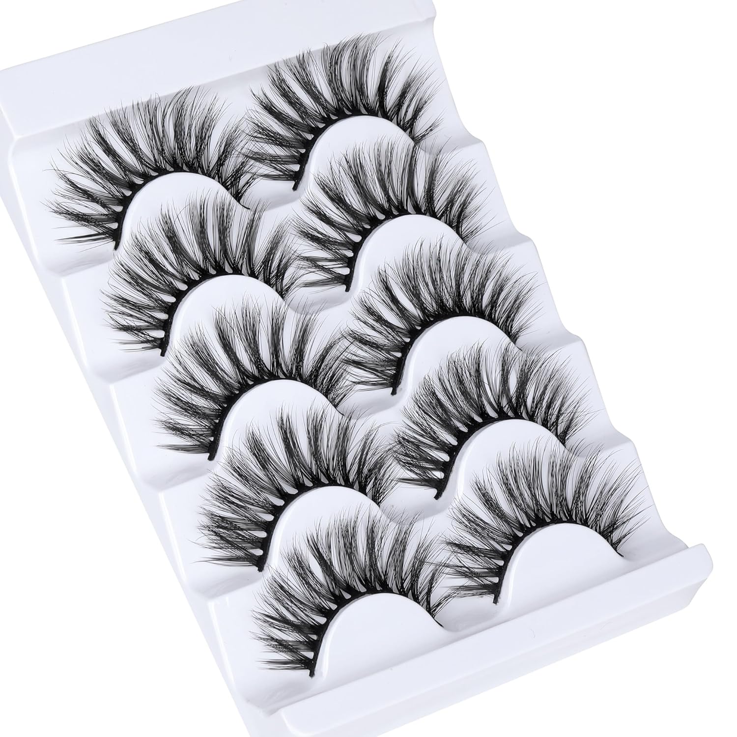 JIMIRE False Eyelashes Wispy Fluffy Round Eye Lashes 17mm Faux Mink Lashes 5D Mink Eyelashes 5 Pairs Pack