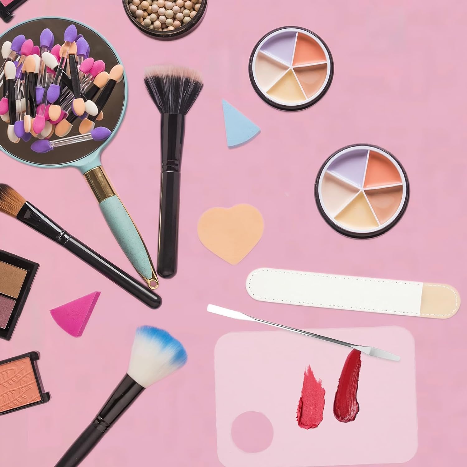 - 1.ăQUALITY MATERIALă: Makeup palette is made of smooth textured high quality acrylic with blunt edges, no rust, no deformation, no easy to break. The double-ended makeup spatula is made of high quality 420 stainless steel, flat head for mixing colors and pointed head for extracting cream.