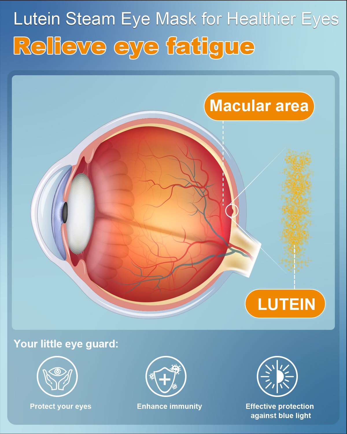 - ✔ AUTO HEATED LUTEIN STEAM EYE MASK- WHY LUTEIN? Protect your eyes;Enhance immunity;Effective protection against blue light.No need microwave or electric plug, just open and put on, it automatically starts heating and warming up. Take a anti-wrinkle energizing spa treatment without go to spa.