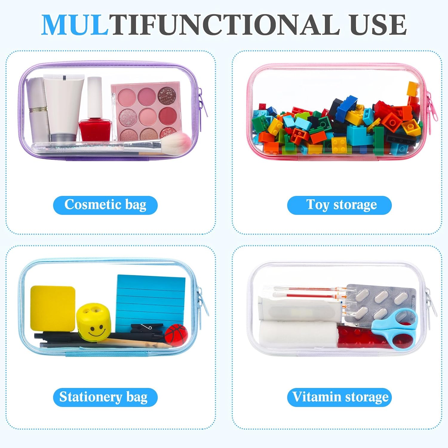 - Packages Includes: this set includes 4 clear hard zipper cases in vibrant colors, offering ample space for organizing your essentials; Suitable for organizing a variety of items, whether you're packing for travel, storing office supplies, or keeping personal belongings tidy at home