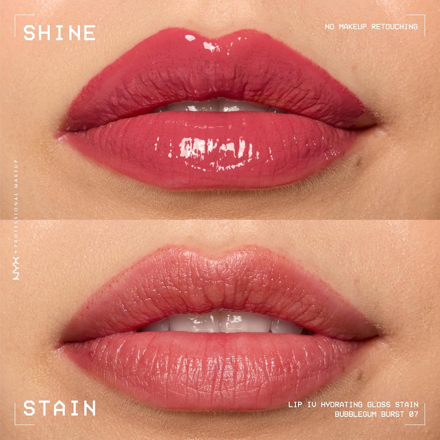 NYX PROFESSIONAL MAKEUP Lip IV Hydrating Glossy Lip Stain with 12HR Hydration - Bubblegum Burst (Pink)