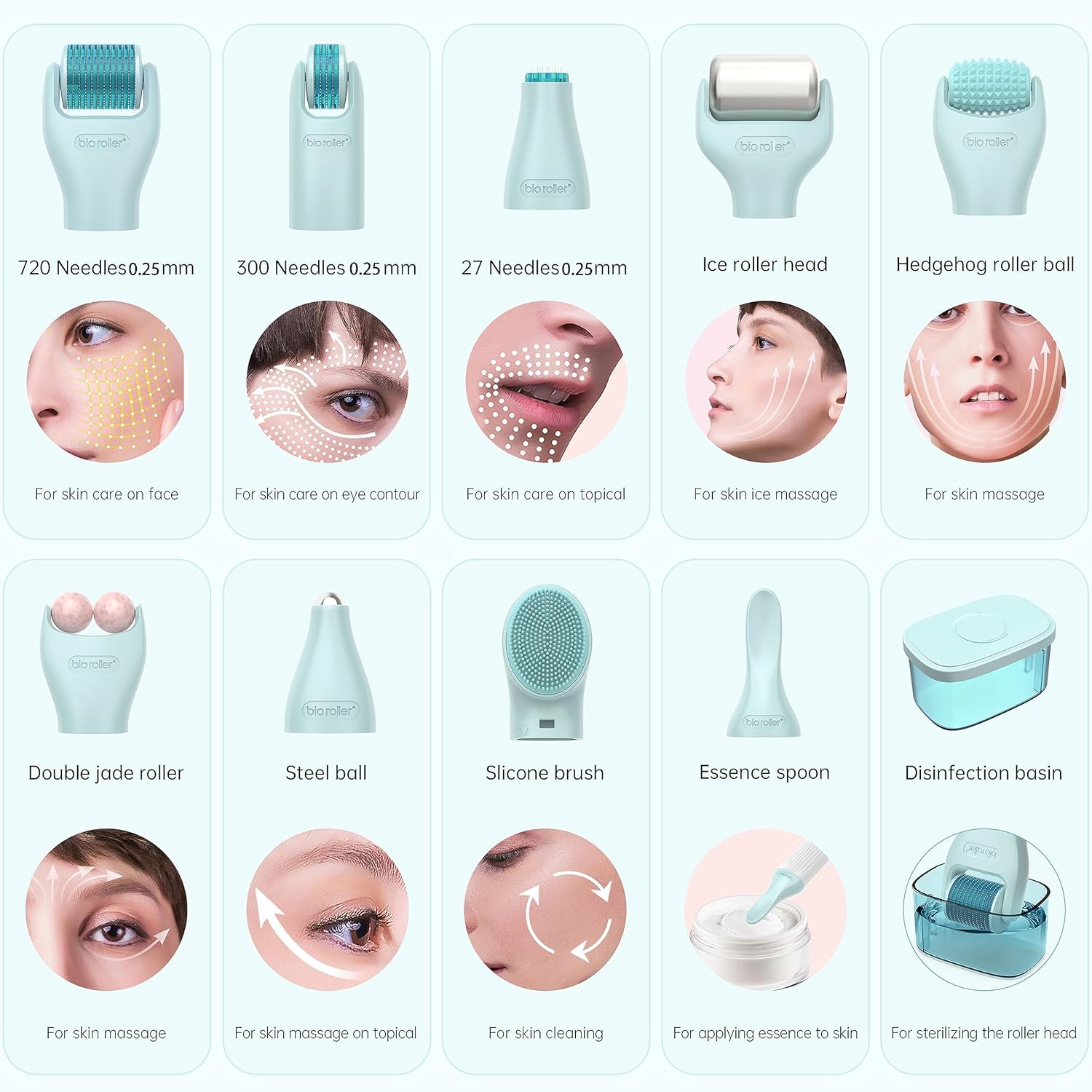 10 in 1 Derma Roller Kit, 0.25mm Microneedling Roller Microneedle Derma Roller with, Facial Beauty Roller Skin Care Tools, 10 Replaceable Heads and Storage Case