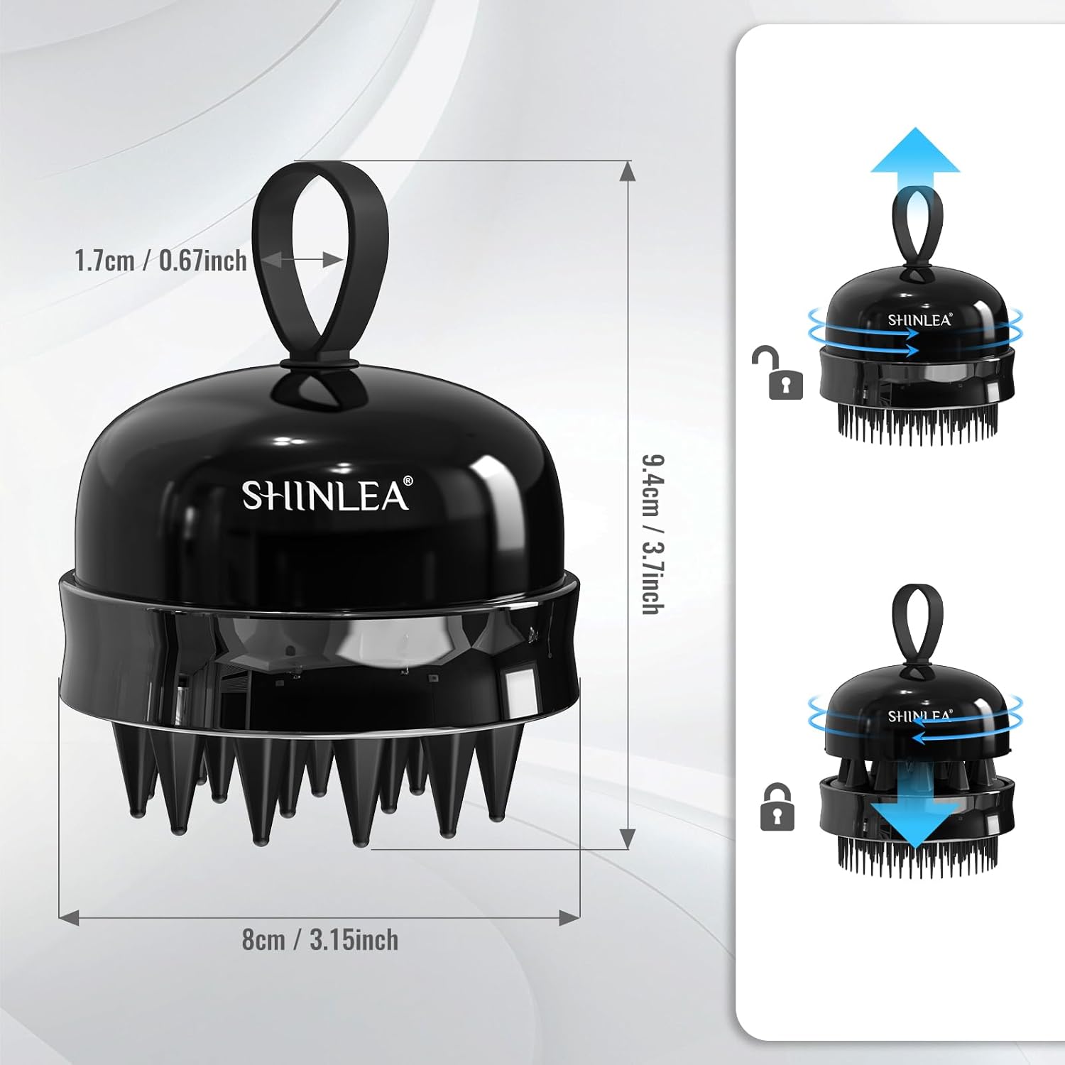 • 2 in 1 Design: The unique 2 in 1 design combines the scalp massager and hair brush into one. Both sides of the use of different heights of the comb teeth and comb needle, high school and low layered design, one side can help you more easily comb open tangled hair, the other side can be more fully contact and massage your scalp. The multi-functional scalp massage comb has a finger ring on the lid for easy gripping and comfort during use.