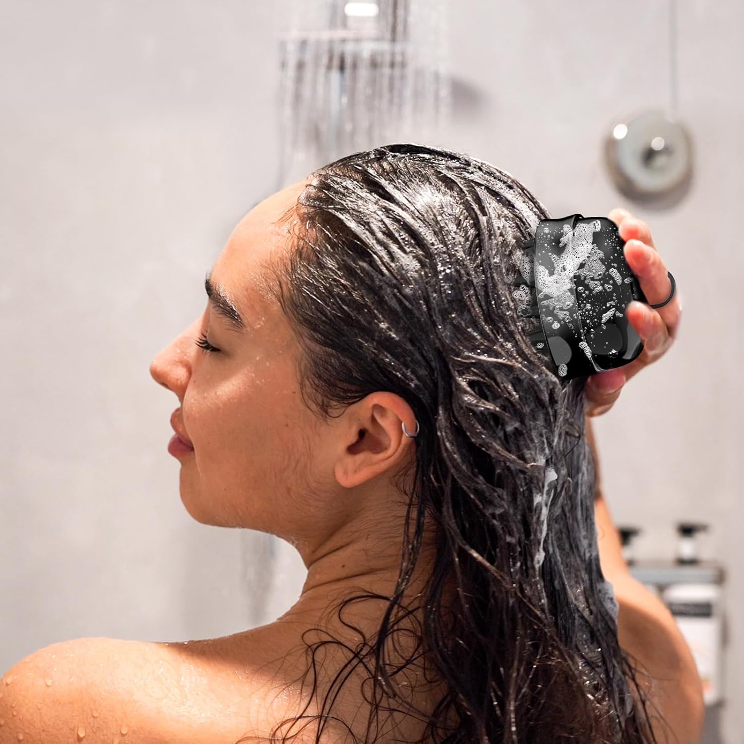 2 in 1 Scalp Massager Hair Growth,Scalp Scrubber with Soft Silicone Bristles for Dandruff Removal,Shampoo Brush for Exfoliation,Head Massager for Both Wet and Dry Use (Black)