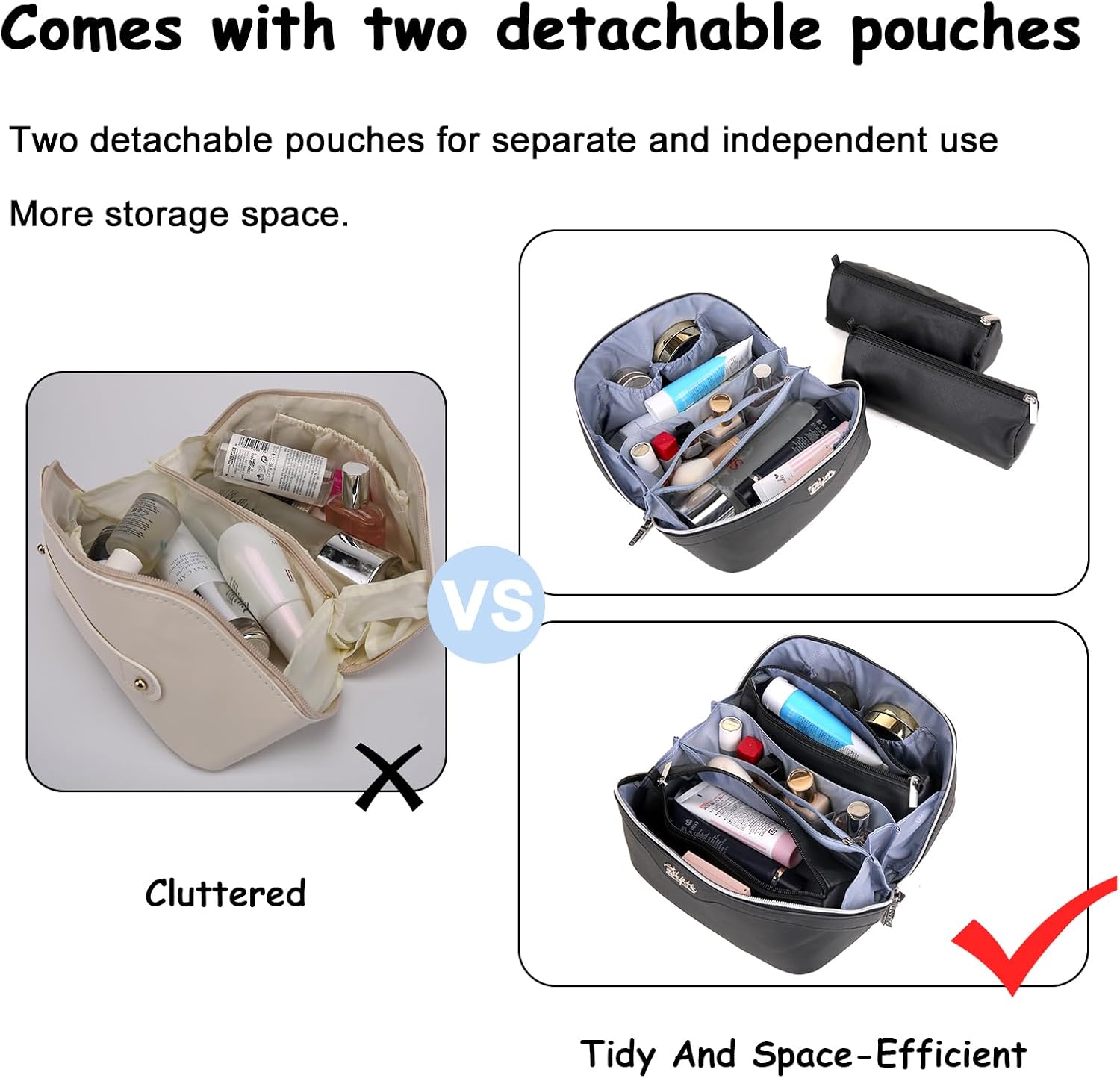 - 3 Pcs Makeup Bags Set: This travel make up bag comes with two detachable makeup pouches, ensuring optimal organization for your skincare products and cosmetics. Perfect for your travel, business trips, vacations, outdoor activities and picnics.