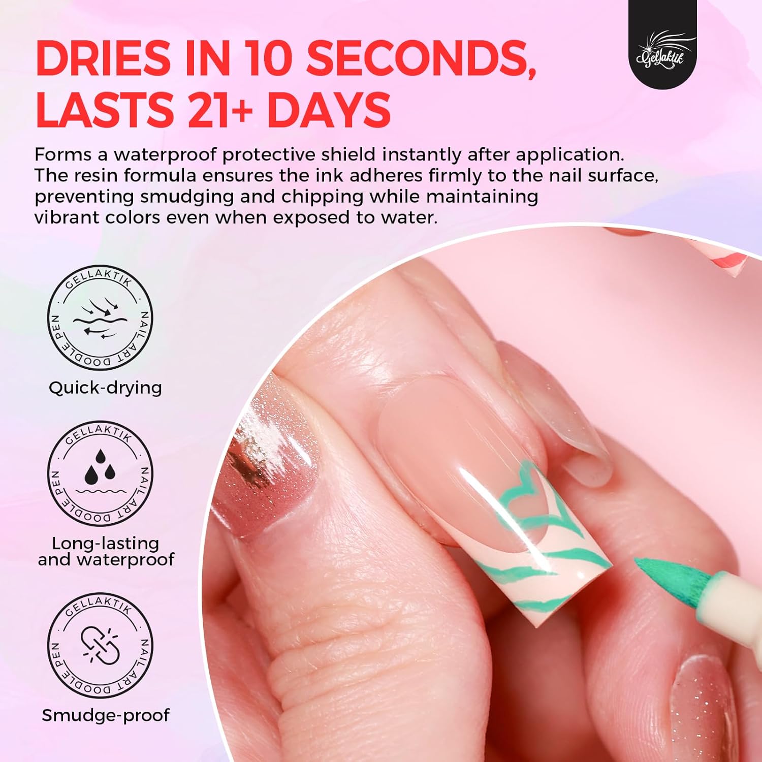 • 【Tips for Use】 Before using the Nail Art Pens shake them well and press the tip vertically several times until the ink flows. After use, immediately recap the pen to prevent the tip from drying out.