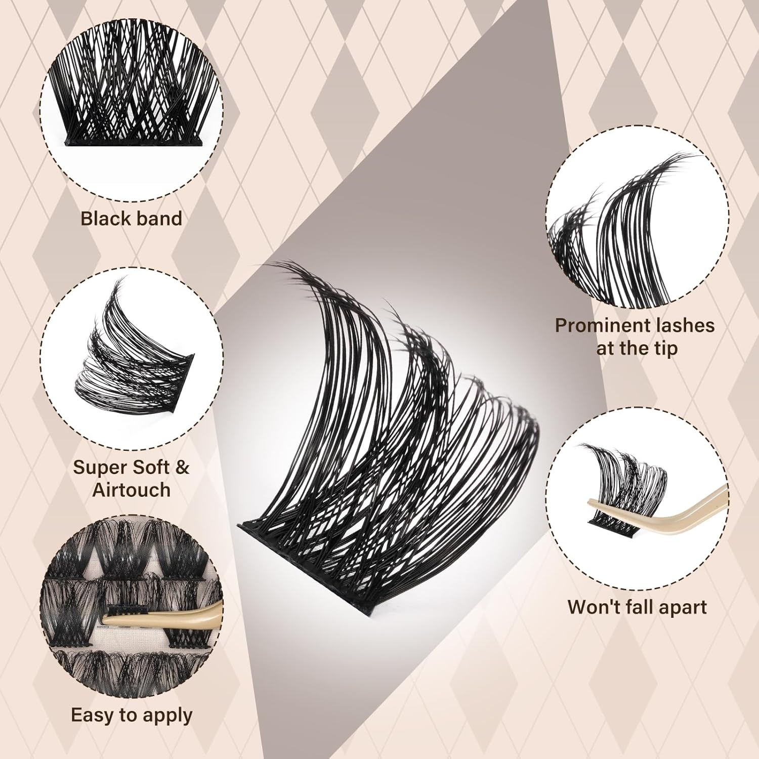- Reusable: Our brand eyelash clusters have super thin band and they are very lightweight. Comfortable to wear the whole day and whole night. Individual cluster lashes can be reused up to 5 times if they are nice cared.