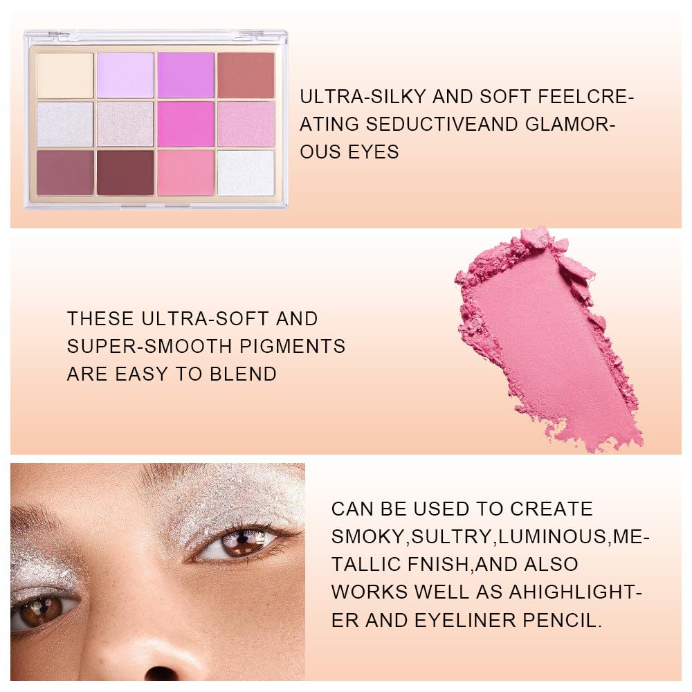 • Multicolor:Eyeshadow palette has a variety of bright colors for you to choose from,you can easily mix and match colors,reasonable color matching,and eyeshadows with high pigmentation will make your eye makeup look more lustrous