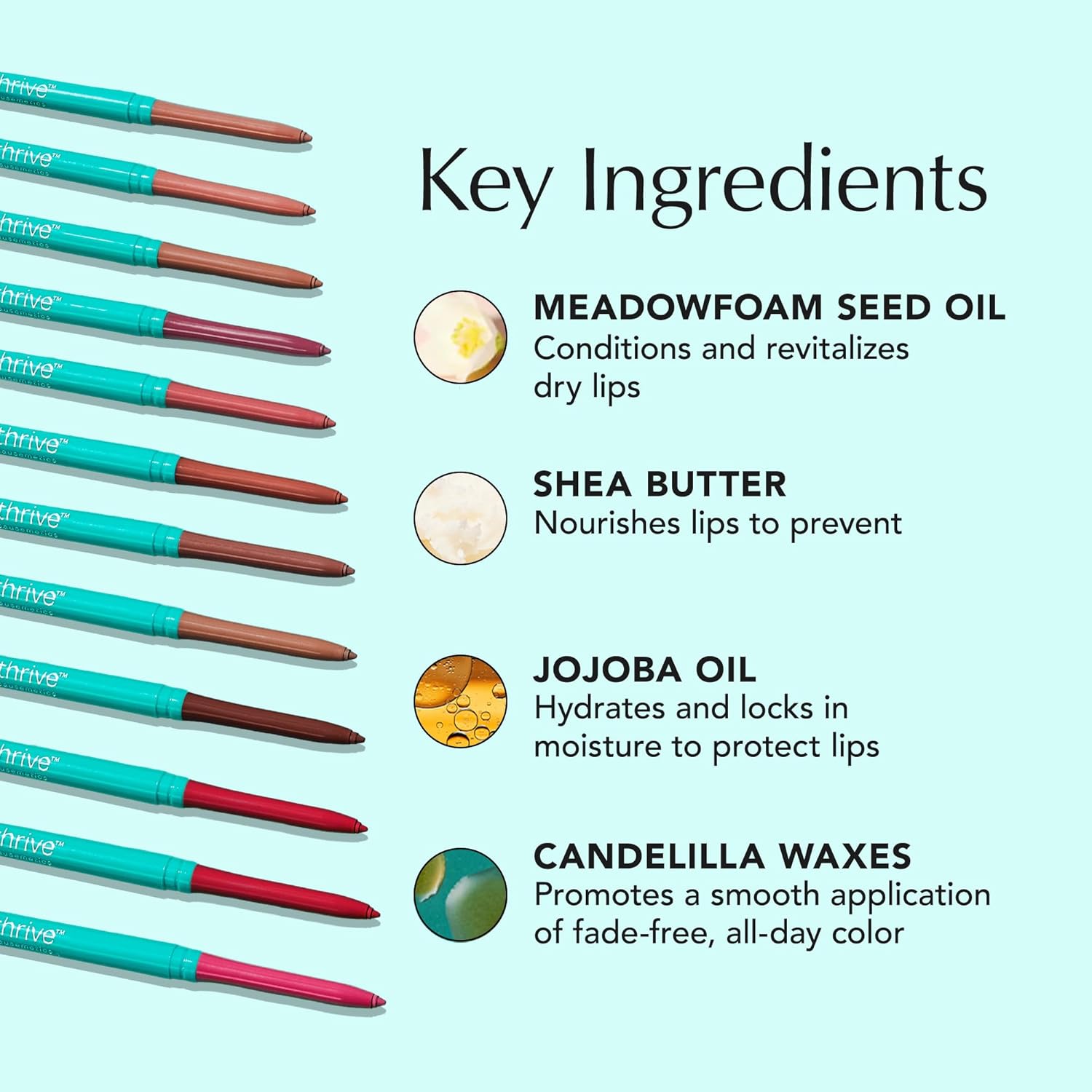 - NOURISHING FORMULA: Packed with meadowfoam seed oil, shea butter, and jojoba oil, our lip liner deeply hydrates and nourishes the lips, leaving them feeling soft and smooth while helping to improve their overall look and texture.