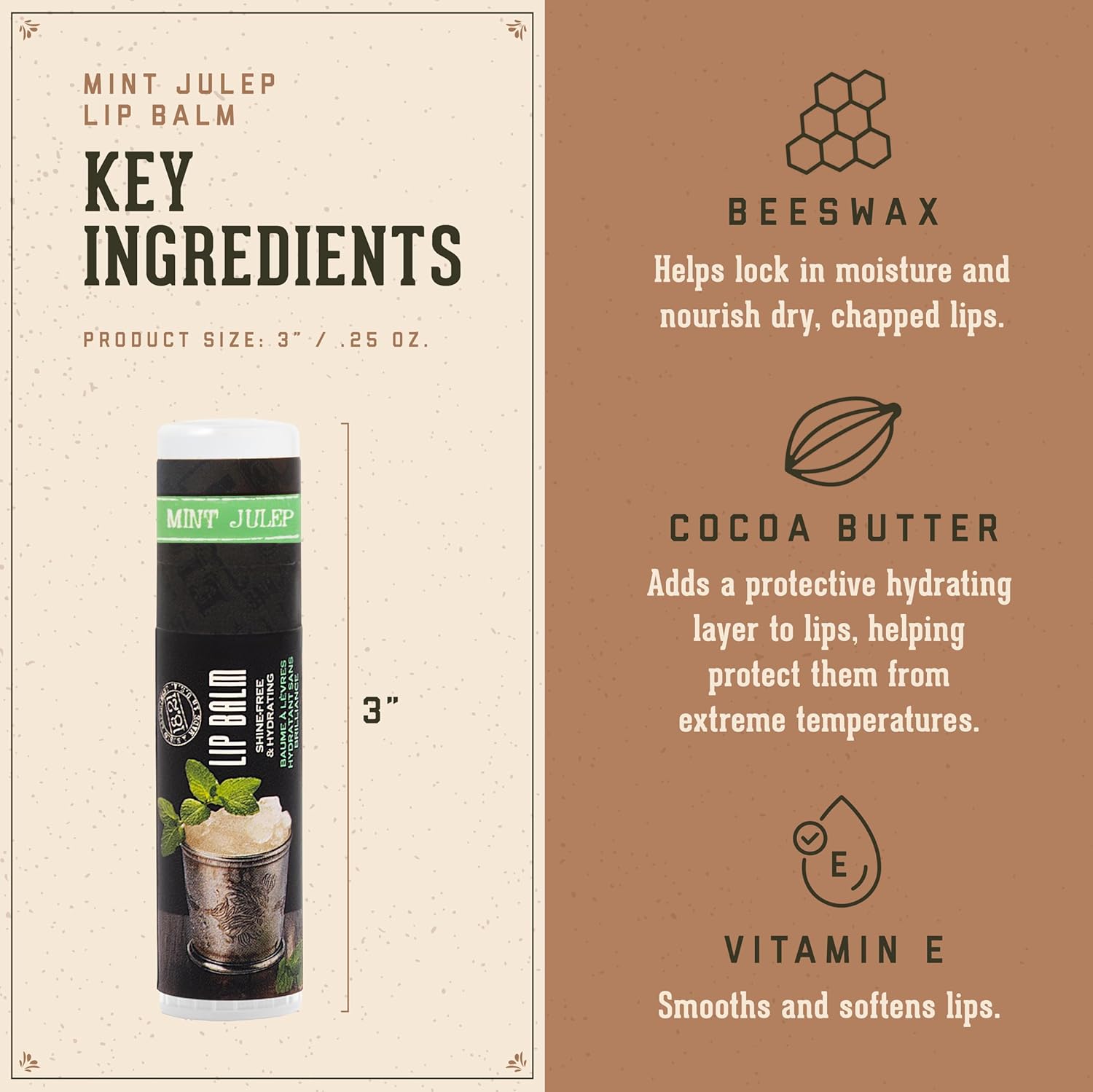 18.21 Man Made Lip Balm - Mint Julep Flavor, Lip Protectant Hydrates & Moisturizes with Beeswax, Cocoa Butter & Vitamin E - For chapped and dry lips