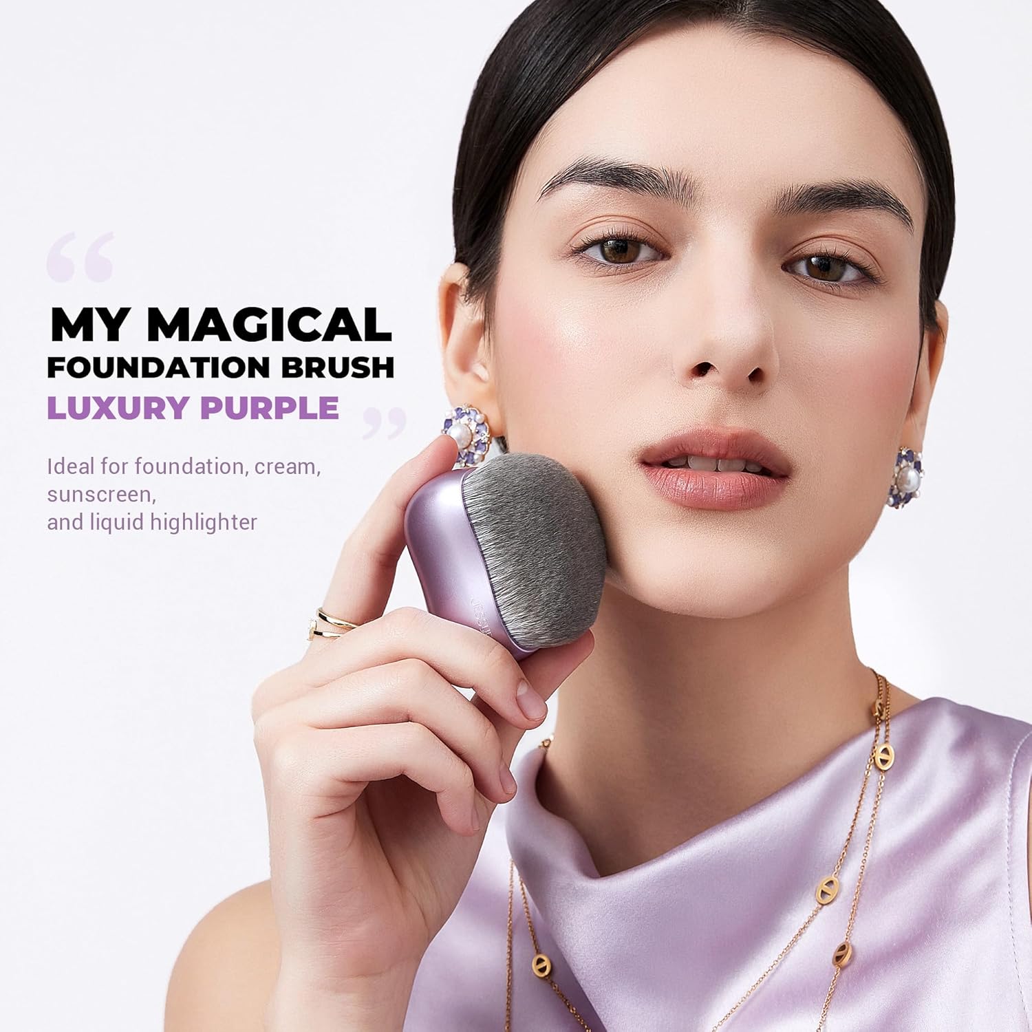 - My Magical Foundation Brush: Multi-tasker Face Brush-Luxury Purple, your all-in-one solution for flawless face makeup. This dense foundation brush is ideal for applying foundation, cream blush, liquid makeup, sunscreen, and highlighter with ease. Designed with soft yet firm bristles, it delivers seamless blending and smooth coverage, making it a must-have in your collection of makeup brushes & tools.