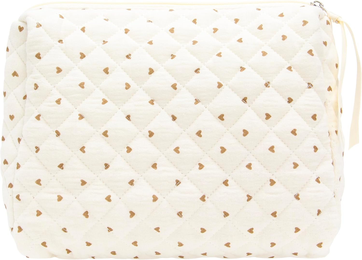 PAZIMIIK Quilted Makeup Bag Large Travel Zipper Soft Cosmetic Pouch for Women Girls Make Up,Gauze Heart Coffee