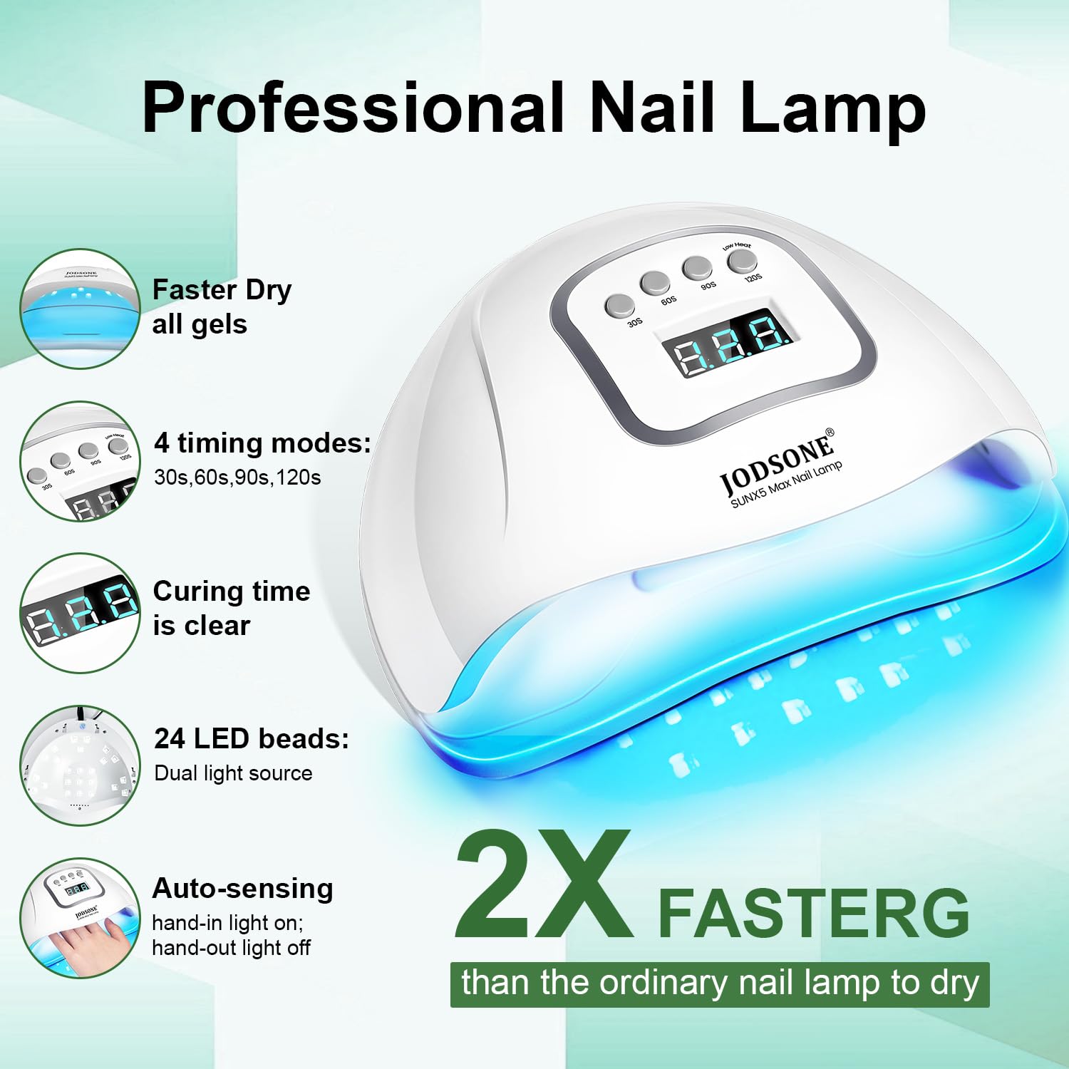 - Quick Nail Lamp: It has an LCD display and 4 timer buttons to make it easier for you to use; smart sensor, just put your hand in and the lamp will automatically light up, let go and the lamp will automatically go off again. Suitable for professional beauty salon and personal home.