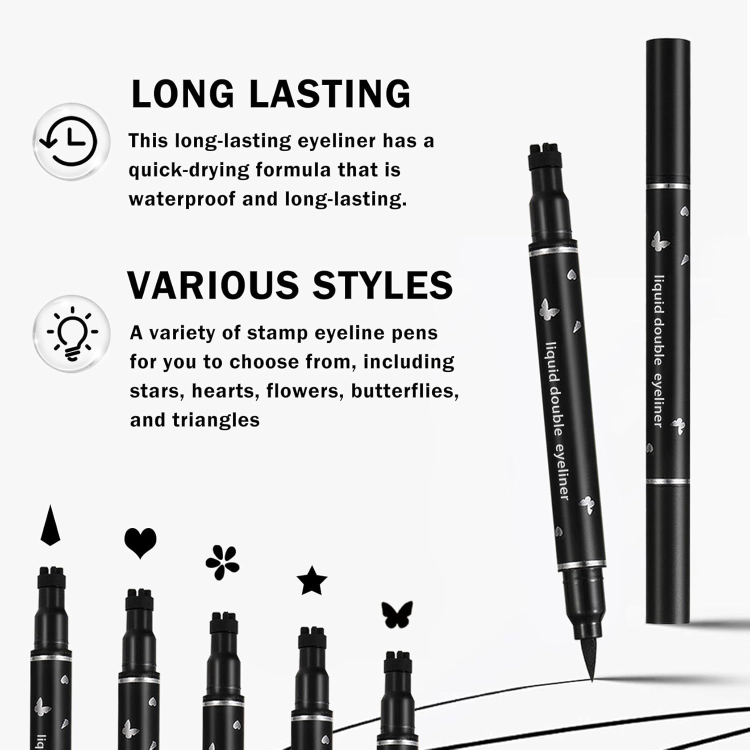 2PCS Double-headed Eyeliner Stamp Pencil Black Liquid Winged Eyeliner Stamp Pen Waterproof Smudgeproof Eye Liner Stamp for Eye Makeup(Heart+Star)